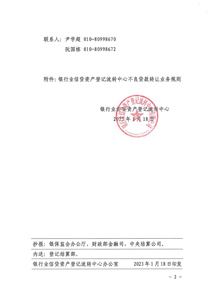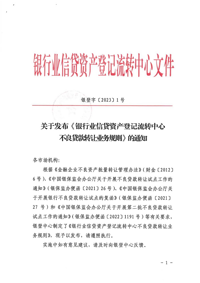 銀行業(yè)信貸資產(chǎn)登記流轉(zhuǎn)中心不良貸款轉(zhuǎn)讓業(yè)務(wù)規(guī)則(銀登字[2023]1號)